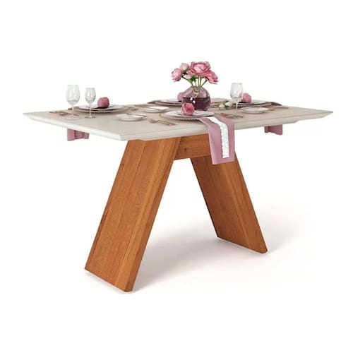 Mesa de Sala Jantar Fit + Tampo Madeirado Vidro 160x90cm Rústico Terrara/Off White - DJ Móveis - Blush