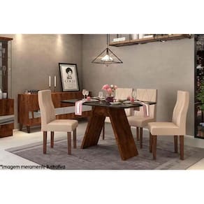 Mesa de Sala Jantar Fit c/Tampo Madeirado Vidro 160x90cm Rústico Terrara/Off White - DJ Móveis