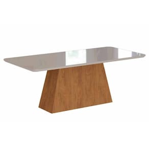 Mesa de Sala Jantar Helena + Tampo Madeirado Vidro 210x100cm Savana c/ Off White - Cimol