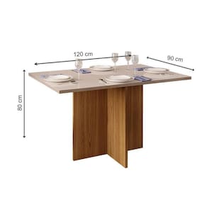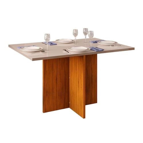 Mesa de Sala Jantar Hera + Tampo Madeirado Vidro Reto 120x90cm Freijó/Off White - DJ Móveis