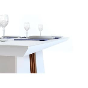 Mesa de Sala Jantar Italia + Tampo Madeirado Vidro 170x90cm Freijó/Off White - DJ Móveis