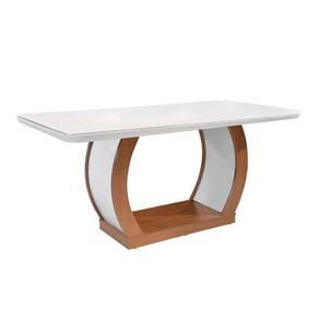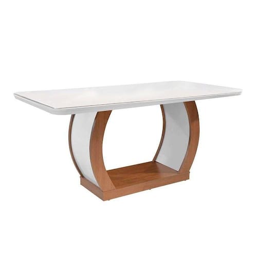Mesa de Sala Jantar Jade + Tampo Madeirado Vidro Curvo 180x90cm Imbuia/Off White - Rufato