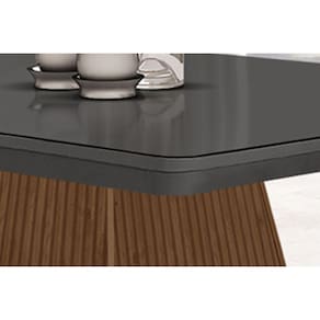 Mesa de Sala Jantar Luna c/ Tampo 90x90cm Madeirado Vidro Canto Curvo - Imbuia/Ripado 3D/Grafite - Rufato