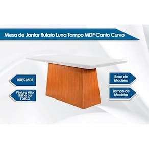 Mesa de Sala Jantar Luna + Tampo Madeirado Curvo 180x90cm Off White/Imbuia - Rufato