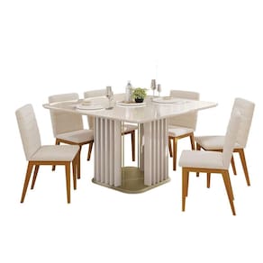 Mesa de Sala Jantar Melissa c/ Tampo Madeirado c/ Vidro Curvo 136x136cm Off White/Off White - DJ Móveis