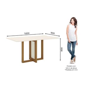 Mesa de Sala Jantar Natalí SC72 + Tampo Madeirado Reto 160x90cm Nature/Off White - Henn - Blush