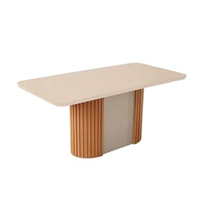 Mesa de Sala Jantar Pilar c/ Tampo Madeirado c/ Vidro Canto Curvo 180X90cm Flex Naturale/Naturale ou Off White - Rufato