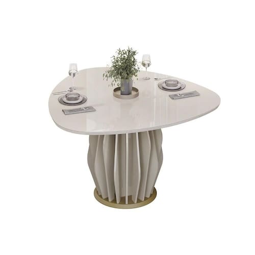 Mesa de Sala Jantar Tokyo c/ Tampo Madeirado c/ Vidro Orgânico 136x136cm Off White/Off White - DJ Móveis
