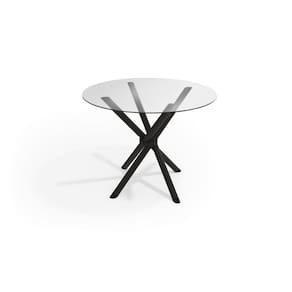 Mesa De Sala Jantar Volga C/ Tampo De Vidro Redondo 95cm Preto - Kappesberg