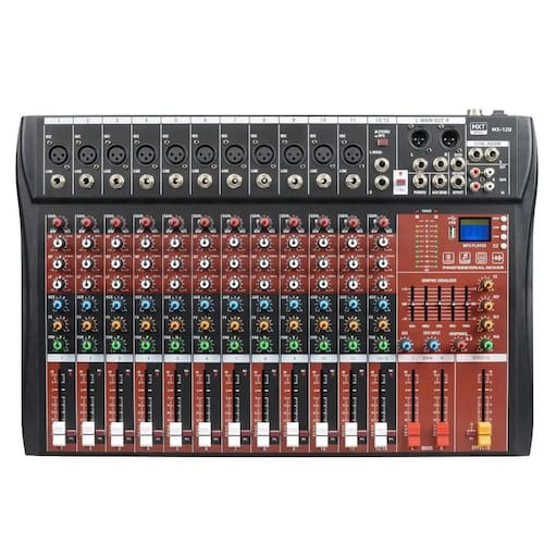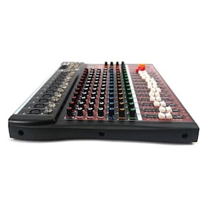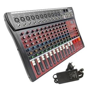 Mesa de som 12 canais com eq/efx/usb/bluetooth Principais características - 11 entradas linha p10 e mcrofone xlr - 2 entradas estéreo - saídas master balanceadas p10 e xlr - saídas aux send, send return, phones - ctrl room p10 - tape in/out , rca - gain, hf, mf, lf, aux, fx, pan, pfl por canal. - equalizador 5 bandas - +48v Usb player e bluetooth Características: 12 canais Efeitos dsp integrados Saída balanceada Equalizador 5 bandas Mp3 player Bluetooth Bivolt Acompanha fonte 100-240vac modelo - ey-08 Seção do canal de entrada Entrada de microfone Entradas de microfone aceitam um conector macho padrão xlr. 1. Terra, 2; sinal, 3. Terra . Você pode usar no máximo 2-60db de acordo com o nível do sinal pelo controle gain. Entrada de linha Usando um conector de linha p10, você pode usar desbalanceado. Conecte a este com teclados ou outros instrumentos elétricos. Controle de ganho Ajusta a sensibilidade de entrada de -60db a - 20db com -20db na posição out e - 40db para odb. Controle de equalização de alta frequência Fornece + 15db de equalização de frequência fixa que atinge 12khz. Controle de equalização de frequência média Fornece + 15db de equalização de frequência fixa que atinge 0 a 3,5khz. Controle de equalização de baixa frequência Fornece + 15db de equalização de frequência fixa que atinge a 100 hz. Controle aux Use este controle para definir o nível do sinal da fonte estéreo externa e o controle do sinal principal é recontrolado pela seção mestre. Homologação Anatel: 079902113999 Ean: 7908324704747