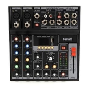 Ele pode ser o mixer de transmissão de karaokê com placa de som, eles combinam a placa de som tradicional e função de mixer Bluetooth embutido, conecte com o telefone celular ou outro aparelho bluetooth. Leitor de MP3 embutido para reproduzir música em vários formatos e gravar, com visor LED. Conecte USB ao PC para reproduzir e gravar a música Conecte seu pendrive diretamente a saída USB, e toque suas músicas diretamente do seu pendrive. Conecte USB ao PC ou ao banco de energia para fornecer energia, conveniência para conexão de áudio móvel e tocar guitarra ao ar livre cantar.