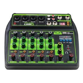 Descrição A mesa de som studio link 8 da probass é uma mesa de som compacta e poderosa, que permite a conexão de todos os seus dispositivos para montagem de um sistema completo de mixagem. Esta mesa de 8 canais oferece 4 entradas xlr/p10 combinadas, 1 canal de entrada de linha estéreo p10 e rca, 1 canal de saída p10 e 1 saída rca. Além disso, o mixer conta com equalizador de 2 bandas por canal, com padrão de qualidade profissional e 16 efeitos digitais, além da comunicação com seu computador através das 2 entradas e 2 saídas usb. A mesa de som studio link 8 probass é compacta, leve e fácil para transportar, além de ser versátil e possuir um alto padrão qualidade. Oferece diversas funções necessárias para ser uma mesa de excelente qualidade, durabilidade e utilidade. Possui entrada para mp3 / pen drive, ao qual a entrada usb pode ser utilizada como gravação direta via usb ou reprodução via usb reprodução mp3 , função interface, conexão bluetooth, entrada para fone de ouvido, entrada de memória flash usb, alimentação fantasma +48v power entre outras funcionalidades. O mixer também conta com tela de led, ou display mp3, para acompanhar o status da reprodução, acompanhado de botões, ou teclas, para realizar o controle operacional do mp3. Esse produto é ideal para quem pretende dar um upgrade na sua sonorização, sendo utilizado por amadores, iniciantes e até mesmo profissionais. Marca Probass Modelo Studio link 8 90 dias Observação Com interface usb Especificações técnicas - marca: probass - modelo: studio link 8 - cor: preto - 08 canais - 2 entradas combo xlr e p10 - 1 canal de entrada estéreo p10 e rca - saída de fone de ouvido - saída de gravação - saída estéreo principal - tela de led: mostra a operação e status de reprodução - 16 efeitos digitais - conexão bluetooth - usb: 2 entradas e 2 saídas - gravação e reprodução direta via usb - interface para pc - equalizador de 2 bandas grave e agudo por canal - leds de pico - resposta em frequência: 20 hz - 20 khz - relação s/n: 105db - distorção thd + n : 0,07% medida com curva de ponderação a - eq por canal: baixo +- 15db, alto +- 15db - botões: ganho, alto, baixo, fx, fx volume, volumede canal, line, usb, pc, bluetooth, phones, principal, repeat, mudança dsp - alimentação via usb pc / fonte 5v - alimentação fantasma power +48v - dimensões: 22 cm x 28 cm x 7 cm - peso: 0,835 kg Homologação Anatel: 025931304858