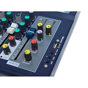 Mesa de Som Digital USB 4 Canais Bluetooth MP3 Player Bivolt Mesa de Som Digital USB 4 Canais Bluetooth MP3 Player Bivolt LE-710 Potencialize o som das suas produções e apresentações com a Mesa de Som Digital LE-710. Desenvolvida para oferecer desempenho profissional, ela combina versatilidade, alta qualidade sonora e conectividade moderna, sendo ideal para DJs, músicos, produtores, podcasters e criadores de conteúdo que buscam confiabilidade e praticidade no dia a dia. Com conectividade Bluetooth, USB, RCA e entrada auxiliar, você pode reproduzir músicas diretamente de smartphones, tablets, computadores ou pendrives, além de utilizá-la como interface de áudio para gravações de alta qualidade no seu software preferido. Perfeita para home studios, transmissões , eventos, palestras e ensaios, entrega controle preciso e resposta sonora fiel, garantindo um resultado profissional em qualquer aplicação. A mesa conta com 4 canais independentes, incluindo entradas para microfone com configuração discreta e balanceada eletrônica, canais de linha balanceados e canais estéreo de alta performance. Sua equalização de 3 bandas  graves, médios e agudos  permite ajustar o som com precisão, enquanto o monitoramento em tempo real com controle de volume independente garante que você ouça exatamente o que está sendo transmitido ou gravado. Especificações Técnicas: - Modelo: LE-710 - Dimensões: 30,5 cm  altura  x 24 cm  largura  x 5 cm  profundidade  - Tipos de conectividade: RCA, Bluetooth, USB e Auxiliar - Alimentação: Bivolt - Cor: enviada aleatoriamente - Canais de entrada: - Microfone: frequência 10 Hz a 200 kHz, ganho +14 dB a +60 dB, SNR 120 dB E.I.N. - Linha: frequência 10 Hz a 130 kHz, ganho -6 dB a +38 dB, SNR 95 dB E.I.N. - Estéreo: frequência 10 Hz a 70 kHz, ganho linha -8 a +15 dB / mic +13 a +60 dB, SNR linha 96 dB / mic 104 dB E.I.N. - Equalização: - Baixo: 50 Hz 15 dB - Médio: 700 Hz 15 dB - Alto: 10 kHz 15 dB - Saídas principais: +28 dBu balanceado / +22 dBu desbalanceado - Envio AUX: +22 dBu desbalanceado - Envio EFF: +22 dBu desbalanceado - Saída tape: +22 dBu desbalanceado - Saída para fones: +15 dBu / 150 Itens inclusos: - 1 Mesa de Som LE-710 - 1 Fonte de Alimentação - 1 Manual do Usuário Construída com componentes de alta durabilidade e homologação de segurança, a LE-710 oferece confiabilidade em uso contínuo e excelente relação custo-benefício. Seu design compacto facilita o transporte e a instalação, sem abrir mão de recursos essenciais para quem busca qualidade e versatilidade em qualquer situação. : Este produto conta com de 3 meses contra defeitos de fabricação, assegurando que você tenha suporte e tranquilidade na sua compra. A Mesa de Som Digital USB 4 Canais Bluetooth MP3 Player Bivolt LE-710 é a escolha certa para quem deseja unir potência, qualidade sonora e recursos completos em um único equipamento. Homologação Anatel: 149822010251