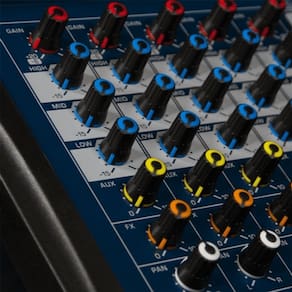 A mesa tem saída L/R para caixa de som, saída para fone, aux send e return. O controle dos 16 efeitos DSP é feito através de seletor de efeitos, equalizador gráfico e fader de volume específico.