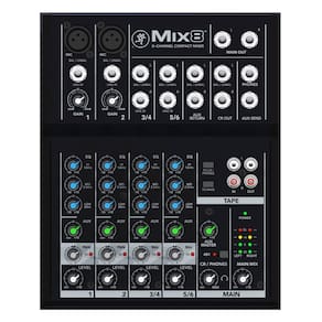 A Mackie Mix8 é uma mesa de som compacta de 8 canais que apresenta componentes de alta qualidade, um chassi de metal robusto, e é projetada para uma variedade de aplicações de reforço de som.