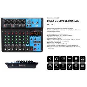-1 Mesa de som mixer de 8 canais;