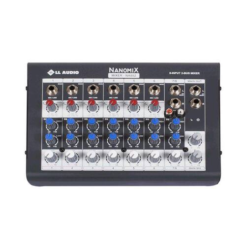 Mesa de som mixer da linha Nanomix da LL audio NA802 com 8 canais. - Produto 100% nacional - Revenda autorizada LL Audio Características: Mesa de uso múltiplo que podem ser utilizadas na produção de músicas residencial, em igrejas, shows ao vivo e outras aplicações. Compatível com carregadores de celulares acima de 100W. Pode ser alimentada diretamente por qualquer porta USB de computadores ou por energia móvel Power Pack. Conexão PCSound reproduz o som do comutador diretamente em sua saída se ligado em uma porta USB. Especificações Técnicas: - Tamanho e peso reduzidos - 8 Canais P10, 6 canais mono e 1 estéreo - Ajuste de Ganho por canal - Alimentação: 90V a 240v - Consumo: 400 mA - Volume independente das saídas L e R - Equalizador de 02 vias: Graves e Agudos - Canal Estéreo com conectores P10 e RCA - Acompanha Fonte Externa com cabo USB - Entrada: 100V-240V - 50/60HZ 0,35A - Compatível com fonte de celulares acima de 10W - Permite alimentação por porta USB acima de 2A - Dimensões: Altura de 6,5 cm x Largura de 25,4 cm x Profundidade de 15 cm embalado - Peso: 1,00 Kg - Garantia: 12 meses - Prazo de validade do mixer: Indeterminado Ean: 7898623886254