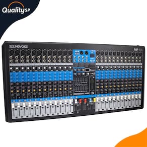 Especificações Técnicas: • 24 canais mono XLR e de linha P-10 • Equalização de 3 vias (grave, médio e agudo) por canal • Possui Efeitos 24 bits • 99 efeitos • Processador de efeitos com tela de LCD • Equalizador gráfico duplo de 7 bandas • 2 auxiliar send • Entrada USB com display digital • Gravação e reprodução direta em USB • Interface de áudio • Função Bluetooth • Leds indicadores de pico • Bivolt