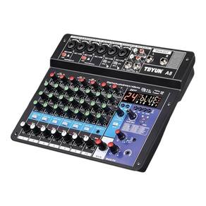 Mesa de som teyun a8 8 canais Descrição A mesa de som teyun a8 de 8 canais com conectividade bluetooth, usb e entradas xlr é uma solução completa e moderna para quem busca qualidade sonora, versatilidade e recursos avançados em gravações, transmissões ou apresentações. Ideal para músicos, produtores, podcasters e streamers, este mixer oferece uma combinação poderosa de placa de som digital com tecnologia analógica, além de uma ampla gama de conexões: são 6 entradas para microfones e 2 entradas de linha, suportando microfones condensadores com alimentação power de 48v e diversos dispositivos de áudio. Com equalização de 3 bandas em cada canal, 24 efeitos dsp, filtro passa-alta, loopback para gravações e leds de monitoramento em tempo real, essa mesa de som proporciona controle total sobre o som e performance. Seu chip arm de alta velocidade garante operação estável, som com baixa latência e ruído reduzido. Compacta, leve e portátil, pode ser alimentada via usb diretamente no pc ou com fonte externa, tornando-a ideal para estúdios móveis, gravações em home studio e transmissões em tempo real. Especificações técnicas - número de canais: 8 - entradas: 6 microfones xlr/trs + 2 linhas estéreo rca - saídas: estéreo principal, fones de ouvido 3.5mm, saída para celular - conectividade: bluetooth, usb 2.0, xlr, trs, rca, 3.5mm - resposta de frequência: 20hz - 20khz 1db - taxa de reprodução/gravação: 24 bits / 48khz - distorção thd : 0,02% +10dbu - ruído residual: -85dbu - crossover de canal: -83db 1khz - equalizador por canal: agudos 10khz , médios 2.5khz , graves 100hz , variação 15db - filtro passa-alta hpf : 80hz, 12db/oitava - alimentação power: 48v - função loopback para gravação/lives - monitoramento: leds de pico e nível principal estéreo - chip arm de alta velocidade com processamento de efeitos Dimensões e peso - comprimento: 27 cm - largura: 34 cm - altura: 8 cm - peso: 1,2 kg Itens inclusos - 1 mesa de som 8 canais com interface digital integrada - 1 cabo usb - 1 manual do usuário em português : 3 meses de pelo fabricante. Origem: china Imagens meramente ilustrativas, podendo haver variação de cor Homologação Anatel: 149822010251