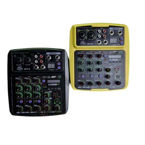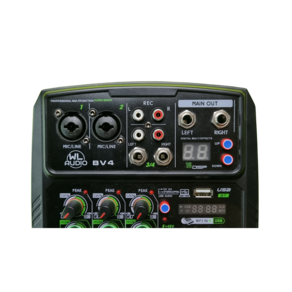 -4 canais, 2 xlr, 2 p10 -controles para ganho, agudo, grave, efx e volume para cada canal -função rec -phantom power de 48v -saida stereo -multiplos efeitos digitais embutidos -entrada usb, mp3 e conexão bluetooth -entrada p2 para fone de ouvido com controle de volume individual -conexão direta com PC -display led -fonte de energia 5v dc