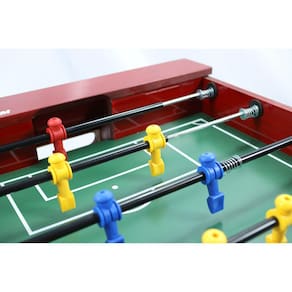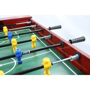 - Produzido em madeira maciça. - Selador padrão mogno; - Bonecos em polipropileno (PP – Plástico) - Possui varões embutidos (não passantes) proporcionando maior segurança. - Acompanha duas bolinhas. - Contador de pontos; - Peso aproximado: 38 Kg.