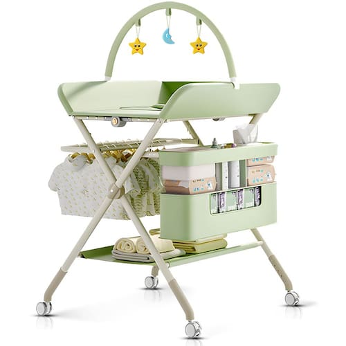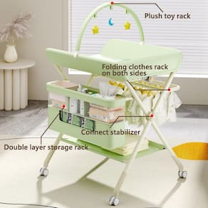 Este trocador de fraldas para bebês apresenta um design de altura ajustável em cinco níveis. Equipado com rodas silenciosas móveis de 360°, seja no quarto, berçário, banheiro ou sala de estar, é muito conveniente de se movimentar