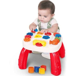 A Mesa Divertida Play Time Cotiplás, além de divertir e distrair o bebê, ajuda na coordenação motora da criança, na distinção de formas e cores. É um brinquedo 100% seguro. Ele vem com telefoninho com discador que faz barulhinho, blocos didáticos, possui deslizante personalizado e engrenagens que giram e outros.