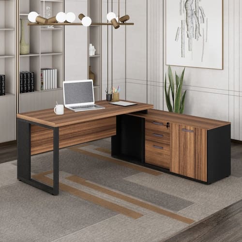reativo (PUR) que em contato com a umidade relativa do ar e/ ou dos sub Acabamento do Tampo: BP Acompanha Manual de Instalação: Sim Ambiente Principal: Escritório Complexidade da Montagem: Média: pode ser montado por mais de uma pessoa e/ou necessite de maior conhecimento para montagem Cor: Marrom/Preto Cor da Base: Preto Cor do Produto: Marrom/Preto Cor do Tampo: Marrom Espessura do Tampo: 40 mm Gaveta com Chave: 01 Itens Inclusos: Uma mesa diretor Manual de Montagem e Instalação: https://product-hub-prd.madeiramadeira.com.br/906955/documents/d225449a-d0d8-424f-84bc-1893e5b252521939449159817152786875509.pdf Material da Estrutura: MDP Material do Puxador da Porta: Metal Material do Tampo: BP Material Principal: MDP Montagem Flex: SIM Necessita Montagem: Sim Origem do Produto: Nacional Peso: 77,867 kg Possui Painel: Não Possui Porta Objetos: Sim Possui Portas: 01 Possui Prateleiras: Não Possui suporte para CPU: Sim Possui Vidro: Não Recomendações de Uso, Manutenção e Limpeza: Antes de limpar recomenda-se que seja retirada toda a poeira com um espanador ou flanela seca para evitar riscos na superfície, após utilize um pano umido em água, macio e limpo. Sapatas Niveladoras: Sim Sistema de Montagem: Parafusos e Cavilhas. Suporta Até (kg): 70 kg Tipo de Corrediça da Gaveta: Metálica Telescópica Tipo de Dobradiça/Corrediça da Porta: Metálica