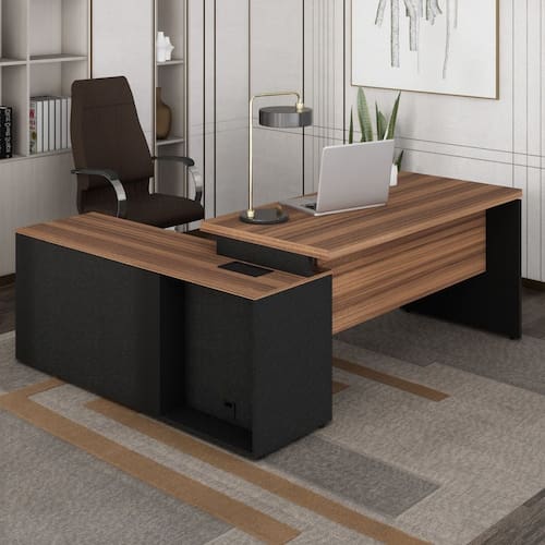 reativo (PUR) que em contato com a umidade relativa do ar e/ ou dos substratos in Acabamento do Tampo: BP Acompanha Manual de Instalação: Sim Ambiente Principal: Escritório Complexidade da Montagem: Média: pode ser montado por mais de uma pessoa e/ou necessite de maior conhecimento para montagem Cor: Marrom/Preto Cor da Base: Preto Cor do Produto: Marrom/Preto Cor do Tampo: Marrom Espessura do Tampo: 40 mm Gaveta com Chave: 01 Itens Inclusos: Uma mesa diretor Manual de Montagem e Instalação: https://product-hub-prd.madeiramadeira.com.br/906974/documents/07c9cb4b-8b1c-4bba-8081-4b384d4722c21939853159817152798072608.pdf Material da Estrutura: MDP Material do Puxador da Porta: Metal Material do Tampo: BP Material Principal: MDP Montagem Flex: SIM Necessita Montagem: Sim Origem do Produto: Nacional Peso: 80,589 kg Possui Painel: Não Possui Porta Objetos: Sim Possui Portas: 01 Possui Prateleiras: Não Possui suporte para CPU: Sim Possui Vidro: Não Recomendações de Uso, Manutenção e Limpeza: Antes de limpar recomenda-se que seja retirada toda a poeira com um espanador ou flanela seca para evitar riscos na superfície, após utilize um pano umido em água, macio e limpo. Sapatas Niveladoras: Sim Sistema de Montagem: Parafusos e Cavilhas. Suporta Até (kg): 70 kg Tipo de Corrediça da Gaveta: Metálica Telescópica Tipo de Dobradiça/Corrediça da Porta: Metálica