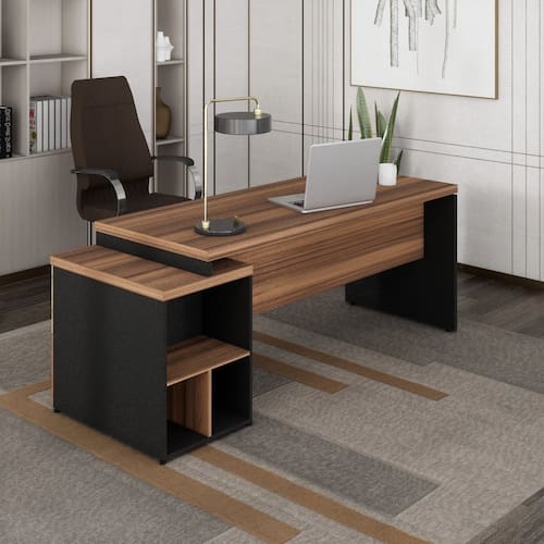 a Acabamento do Tampo: BP Acompanha Manual de Instalação: Sim Ambiente Principal: Escritório Complexidade da Montagem: Média: pode ser montado por mais de uma pessoa e/ou necessite de maior conhecimento para montagem Cor: Marrom/Preto Cor da Base: Preto Cor do Produto: Marrom/Preto Cor do Tampo: Marrom Dobrável: Não Espessura do Tampo: 40 mm Formato: Retangular Gaveta com Chave: 01 Itens Inclusos: uma mesa diretor Manual de Montagem e Instalação: https://product-hub-prd.madeiramadeira.com.br/906991/documents/a6b3a266-1e97-41ae-ae5b-56fd8855b2521940531159817152817187326.pdf Material da Estrutura: BP Material do Puxador da Gaveta: Metal Material do Puxador da Porta: Metal Material do Tampo: BP Material Principal: MDP Montagem Flex: Sim, pode ser montado em ambos lados direito e esquerdo. Necessita Montagem: Sim Origem do Produto: Nacional Peso: 63,8 kg Peso Máximo por Gaveta: 10 kg Possui Porta Objetos: Sim Possui Portas: Não Possui suporte para CPU: Sim Possui Vidro: Não Quantidade de Gavetas: 03 Gavetas Recomendações de Uso, Manutenção e Limpeza: Antes de limpar recomenda-se que seja retirada toda a poeira com um espanador ou flanela seca para evitar riscos na superfície, após utilize um pano umido em água, macio e limpo. Sapatas Niveladoras: Sim Sistema de Montagem: Parafusos e Cavilhas. Suporta Até (kg): 25 kg Tipo de Corrediça da Gaveta: Metálica Telescópica