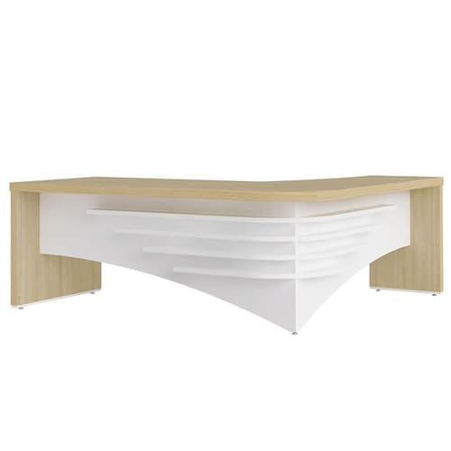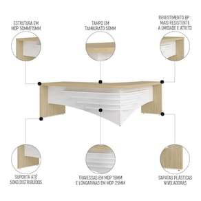 Procurando por uma mesa de escritório elegante e imponente? Conheça a Mesa Diretor em L Lado Direito 200x180cm Corp A06 Carvalho/Branco, da Mpozenato.