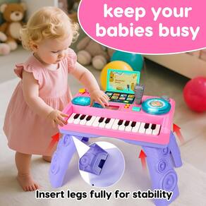 Além do entretenimento, este brinquedo musical apoia o desenvolvimento infantil precoce promovendo habilidades motoras finas, coordenação motora e crescimento cognitivo. A mesa incorpora várias ações de treinamento manual, como apertar, puxar, girar, virar, deslizar e bater, que ajudam a fortalecer as mãozinhas e os dedinhos. Seu design resistente inclui pernas grossas foscas que podem ser fixadas ou removidas, tornando-o versátil para brincadeiras no chão ou na mesa.