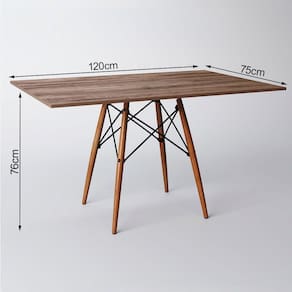 Mesa Dkr Eiffel Retangular Tampo De Madeira 120x75cm AmêndoaA sua cozinha ou sala de jantar ficará completa com essa linda Mesa! Contendo um design de móveis moderno, elegante e com uma ousada combinação de materiais, esse é um produto que certamente esbanja estilo, elegância e muito requinte.Especificações técnicas:Modelo: Eiffel WoodTipo: RetangularCor do tampo: Amêndoa Cor da base dos pés: Wood (Madeira)Material do tampo: Madeira Material dos pés: MadeiraDimensões: Altura: 76 cm // Largura: 120 cm // Profundidade: 75 cm **** NÃO ACOMPANHA CADEIRASMesa Dkr Eiffel Retangular Tampo de Madeira 120x75cm AmÃndoa