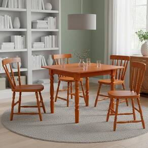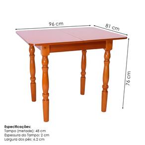 Madeira Maciça Eucalipto e MDPO Conjunto de Jantar 110150LB é a opção perfeita para transformar e valorizar seu lar! Com Mesa Dobrável acompanhada de 04 Cadeiras com estrutura e pés em Madeira Maciça Eucalipto e Tampo da Mesa em MDP revestido Laminado (lâmina de madeira com espessura 2,3 cm e bordas revestidas de 2 cm), além de acabamento em verniz brilho. Conjunto é composto por Cadeiras com encosto e pés torneados (6,2 cm) com detalhes atemporais (suportando até 120 kg cada), Mesa com tampo sendo dobrável (suportando até 30 kg) com dobradiças metálicas e sistema de giro permitindo abertura e fechamento prático, que quando fechado o tampo gira e cobre toda a base da mesa mantendo o produto compacto. NÃO ACOMPANHA OBJETOS NEM DEMAIS DECORAÇÕES. Este conjunto será entregue em 3 volumes.