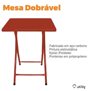 Mesa Dobrável De Bar Restaurante Cozinha Aço Ferro Cor: Laranja Bem vindo à UTILITY Somos uma loja online especializada em utilidades PET, utilidades Domésticas e produtos Pegue e Faça você mesmo Descrição do produto:A mesa de aço dobrável possui ótimo custo beneficio, é de fácil manuseio e ocupa pouco espaço, excelente para uso em áreas de churrasqueiras, lanchonete, bares e também em restaurantes. Trazendo praticidade ao seu ambiente, seus convidados e clientes. Produzido em aço carbono e pintura epóxi conferindo mais resistência ao produto. Não perca tempo, adquira já o seu. Deixe o seu ambiente mais prático e aconchegante. Detalhes do produto: Mesa aberta: Altura: 74 cm Largura: 58 cm Profundidade: 58 cm Mesa fechada: Altura: 92,3 cm Largura: 58 cm Profundidade: 8 cm Peso: 3,955 kg