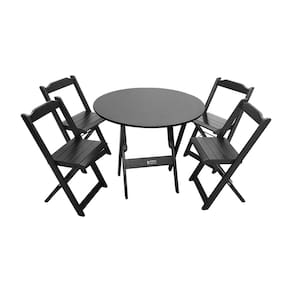 Mesa Dobrável De Madeira Redonda 90cm Com 4 Cadeiras Preta - Tarimatã A Mesa redonda dobrável é ideal para bares, restaurantes, estabelecimentos, áreas de lazer e também para sua casa. Em madeira maciça tornando resistente e durável. Seu design permite ser encaixado em qualquer ambiente, trazendo um toque a mais para seu estabelecimento. Além de sua durabilidade, o que lhe trará conforto para servir seus clientes. Por ser dobrável torna-se mais fácil guardar, manusear e limpar o produto.