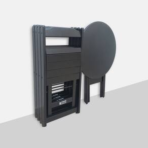 Tipo: Mesa Dobrável Modelo: Redondo Cor: Preto Estrutura: Base em madeira maciça de alta resistência. Tampo: MDF com acabamento de alta qualidade.