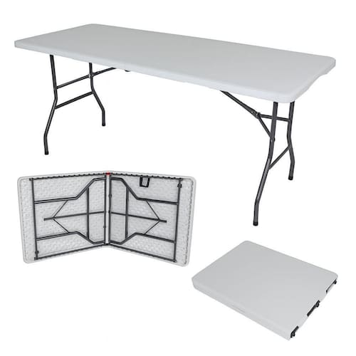 Seu sistema dobrável com travas de segurança garante praticidade na hora de montar, desmontar e armazenar, tornando-a perfeita para eventos, reuniões, churrascos, acampamentos ou uso comercial. Mesmo com seu tamanho amplo de 1,52m de comprimento, a mesa é leve e fácil de transportar, pesando apenas 8,5 kg. O design moderno combina o painel branco com a estrutura cinza metálica, criando um visual neutro que harmoniza com diferentes estilos de decoração. Além disso, sua superfície lisa e resistente facilita a limpeza, sendo ideal para o uso cotidiano em residências, escolas, buffets e áreas de lazer.