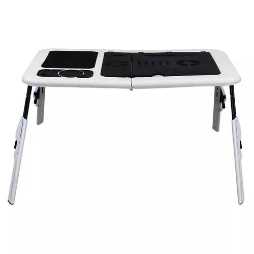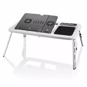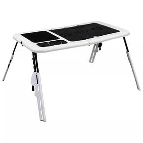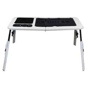 Mesa dobrável notebook table 2 cooler mousepad cabo usbPensando em praticidade, com a mesa dobrável será possível você sentar no sofá ou deitar na cama e trabalhar, estudar ou até mesmo navegar na internet, com total conforto. A mesa conta com porta corpos, porta canetas e ainda possui um espaço para o posicionamento do mouse, não sendo necessário o uso de mousepad.Possui um design moderno e elegante, além disso, sua altura e inclinação são reguláveis, portanto, o posicionamento será perfeito, de acordo com a sua necessidade. Por ser dobrável, você pode levar a mesa para qualquer lugar, guardando em sua bolsa, mochila, entre outrosCompatível com notebook de até 15 polegas e ainda contém 2 coolersCaracterísticas  Praticidade e conforto, com a mesa dobrável é possível você levala em sua mochila para aonde precisar, ocupando pouquíssimo espaço; Instalação simples, perfeito para você utilizar seu notebook sentado no sofá, em sua cama, entre outros; Possui 2 coolers de refrigeração para seu notebook; Possui um design moderno e elegante, além disso sua altura e inclinação são reguláveis; Compatível com notebooks de até 15 polegadas; Contém porta copos, porta caneta e ainda conta com um espaço para posicionar o seu mouse, não havendo a necessidade de utilizar mousepad; Informações técnicas  Produto: Mesa para notebook dobrável Cor: Preto com branco ENVIO ALEATÓRIO Material: Composto de plástico extra resistente  Cor: Branco com detalhes em preto  Compatível com notebook de até 15 polegadas  Regulagem de altura 5 níveis e inclinação ajustável Possui espaço para posicionar o mouse Possui 2 coolers Acompanha cabo USB para ligação do cooler  Contém porta copos e porta canetas  Dimensões do produto aberto: 56 x 36 x 31 cm  Dimensões do produto dobrado: 28,5 x 31,5 x 3,6 cm Peso: 1,5 Kg Itens Inclusos: 1x Mesa para Notebook Dobrável  1x Manual em inglês 2x Cabos USB para a ligação do cooler