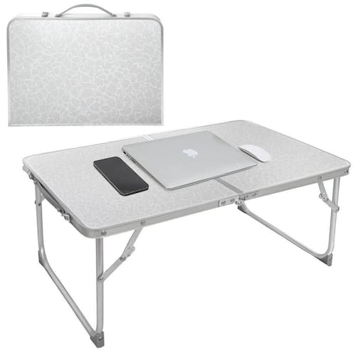 Mesa Dobrável Portátil de Alumínio com Tampo em MDF Vira Maleta, Ideal para Sofá, Cama, Home Office e Refeições