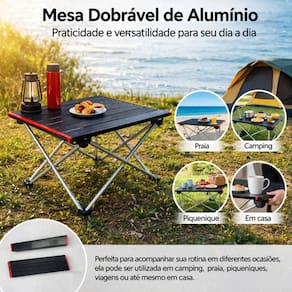 A mesa de alumínio dobrável é a solução ideal para quem busca praticidade, leveza e versatilidade no dia a dia. Perfeita para acompanhar sua rotina em diferentes ocasiões, ela pode ser utilizada em camping, praia, piqueniques, viagens ou até mesmo em casa. Com estrutura resistente e material de alta qualidade, oferece durabilidade e excelente desempenho. Seu design dobrável permite fácil transporte e armazenamento, ocupando pouco espaço quando não está em uso. Leve e funcional, é a escolha certa para quem precisa de uma mesa prática e pronta para qualquer situação.