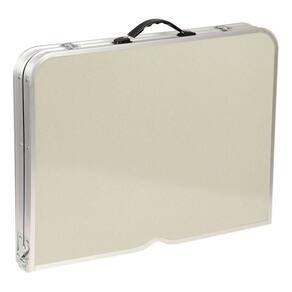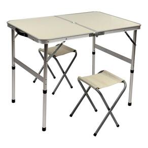 Características: - Fácil de montar e desmontar; - Torna-se uma prática maleta para transporte; - Estrutura de alumínio, tampo de MDF aluminizado e tecido oxford nas banquetas.