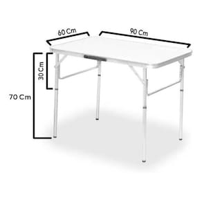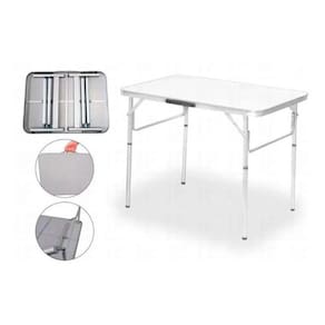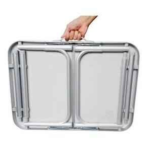 Mesa Com Pernas Dobráveis Aluminio Alca para transporte A mesa maleta e ideal para praia, campo, piquenique. Seus material e de alta qualidade, tornando-a super pratica e firme. Compacta, voce pode transporta-la para qualquer lugar sem nenhum esforco, pois alem de possuir alca para carregar, ela e super leve. Conta com pernas ajustaveis para se adequar a sua necessidade.