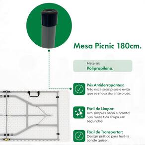 A Mesa Picnic é fabricada com tampo em polipropileno e pés em ferro, ideal para conforto e apoio. Com ótimo acabamento e materiais, é uma mesa resistente e durável.