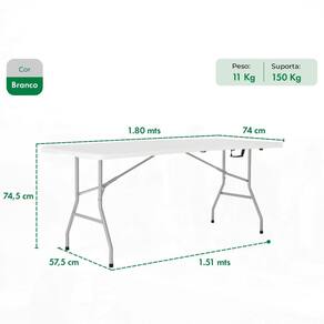 Mesa Dobrável Vira Maleta Portátil 1,80m Branco