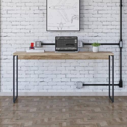 Material: Mdp | Acabamento: Perffect Acetinado | Escala de Brilho: Fosco | Fita de Borda: Pvc | Material da Estrutura / Pés: Aço | Acabamento Estrutura: Epóxi-Pó Texturizado | Possui Prateleiras: Não | Possui Pés: 2 | Pés Niveladores: Sim | Suporta Até (kg): 30 kg | Cor: Branco Cor: Carvalho / Est.Preta