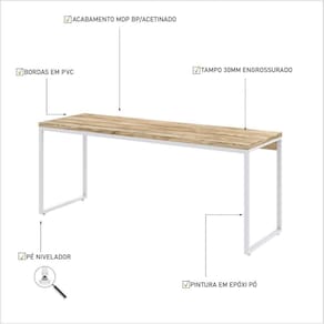 Mesa Dynamica Diretor 180x60x75cm Carvalho - Carvalho - - Blush
