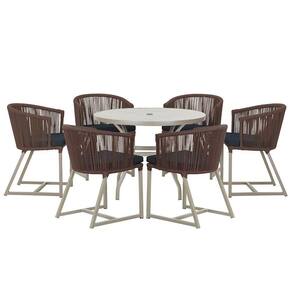 Mesa E 6 Cadeiras De Jantar Noronha Fendi E12 Trama Marrom