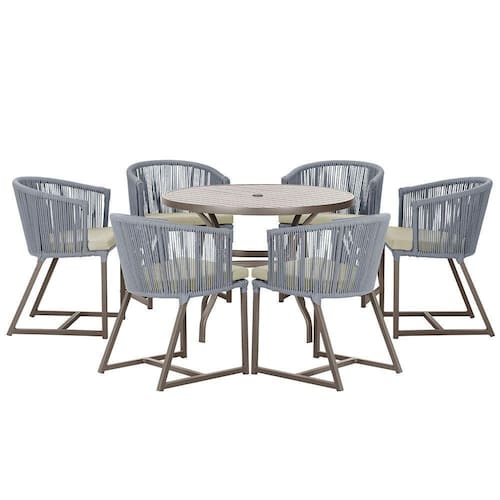 Produto conhecido como: mesa e cadeiras, Jogo de jantar, Estofado impermeavel, Moveis de exterior, Cadeira resistente a agua, Cadeira estofada, Cadeira para
