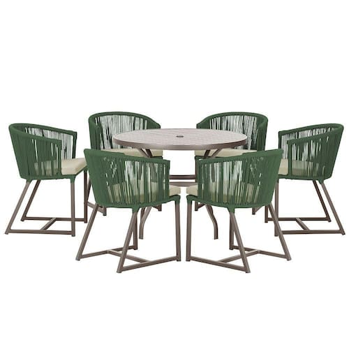 Mesa E 6 Cadeiras E Noronha Marrom E7 Trama autêntico Verde